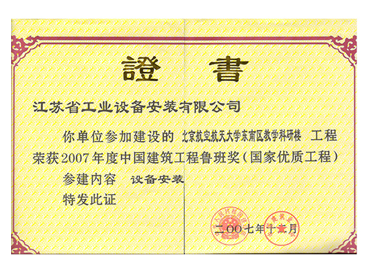 北京航空航天大學東(dong) 南區教學科研樓工程建築麵積廣,構造複雜,是江蘇省安在北京地區的又一標誌性工程,獲得2007年度“魯班獎”。