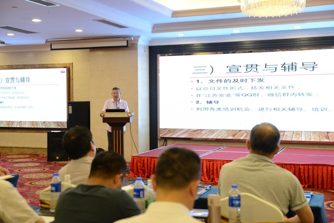 8月4日,江蘇省安裝行業(ye) 協會(hui) 在南京舉(ju) 辦專(zhuan) 家交流會(hui) ,邀請資深專(zhuan) 家講課,學習(xi) 新規範新技術,分享創建優(you) 質工程經驗,旨在促進行業(ye) 科技創新和技術進步。公司總工程師馬記,圖紙深化中心趙成顯,工程管理部倪寶明、張濤參加會(hui) 議。