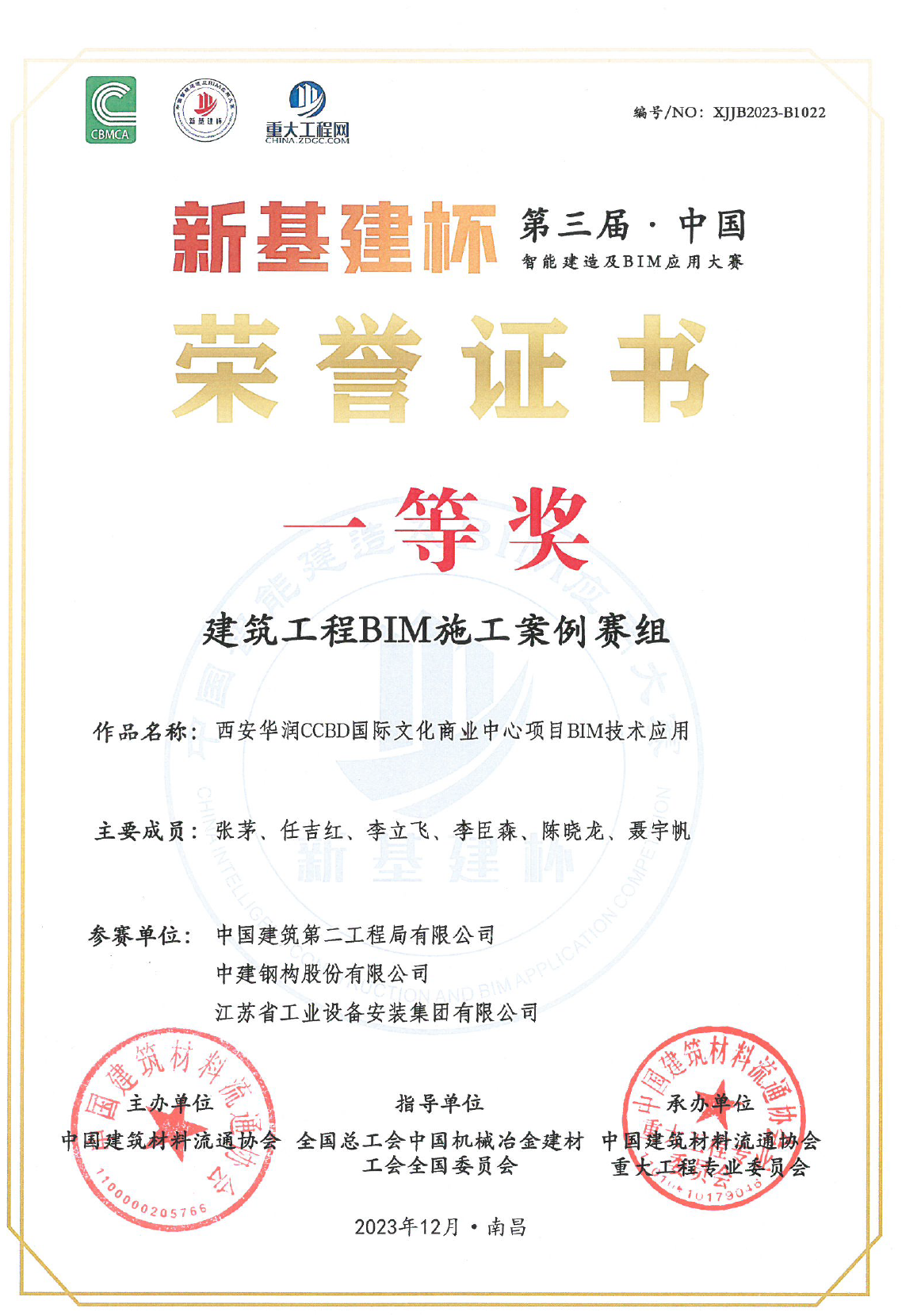 我司上海分公司參與(yu) 第三屆“新基建杯”智能建設及BIM應用大賽,參賽作品《西安華潤CCBD國際文化商業(ye) 中心項目》榮獲一等獎。