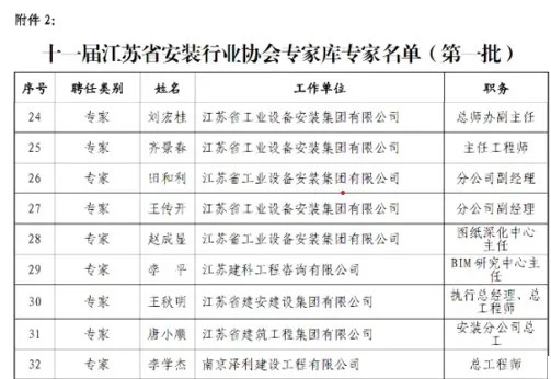 日前,江蘇省安裝行業(ye) 協會(hui) 公布了十一屆江蘇省安裝行業(ye) 協會(hui) 科學技術委員會(hui) 委員、專(zhuan) 家庫專(zhuan) 家名單,我司多名人員榜上有名,這無疑是對我司技術實力和行業(ye) 影響力的肯定。
