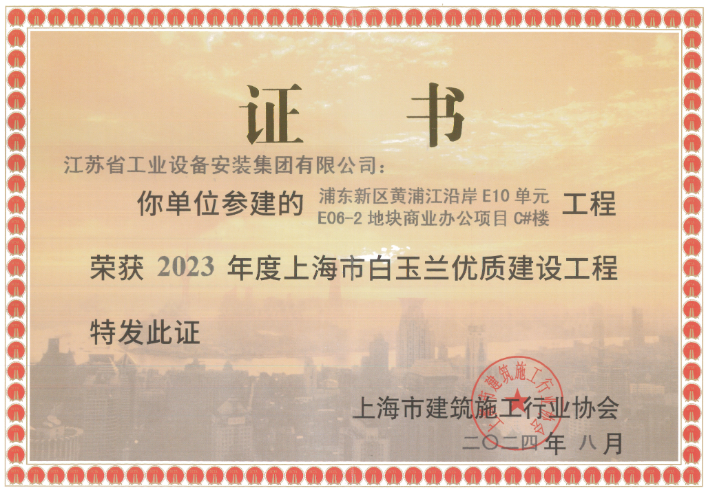 日前,上海市建築施工行業(ye) 協會(hui) 傳(chuan) 來喜訊,由我司上海分公司承建的浦東(dong) 新區黃浦江沿岸E10單元E06-2地塊商業(ye) 辦公項目C#樓榮膺“2023年度上海市白玉蘭(lan) 優(you) 質建設工程”。這一榮譽是對我司在建築工程領域專(zhuan) 業(ye) 能力與(yu) 卓越品質的高度認可。