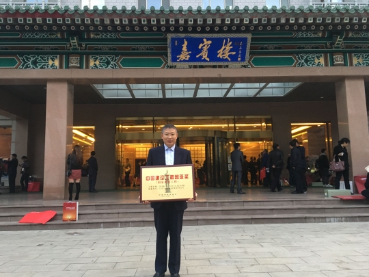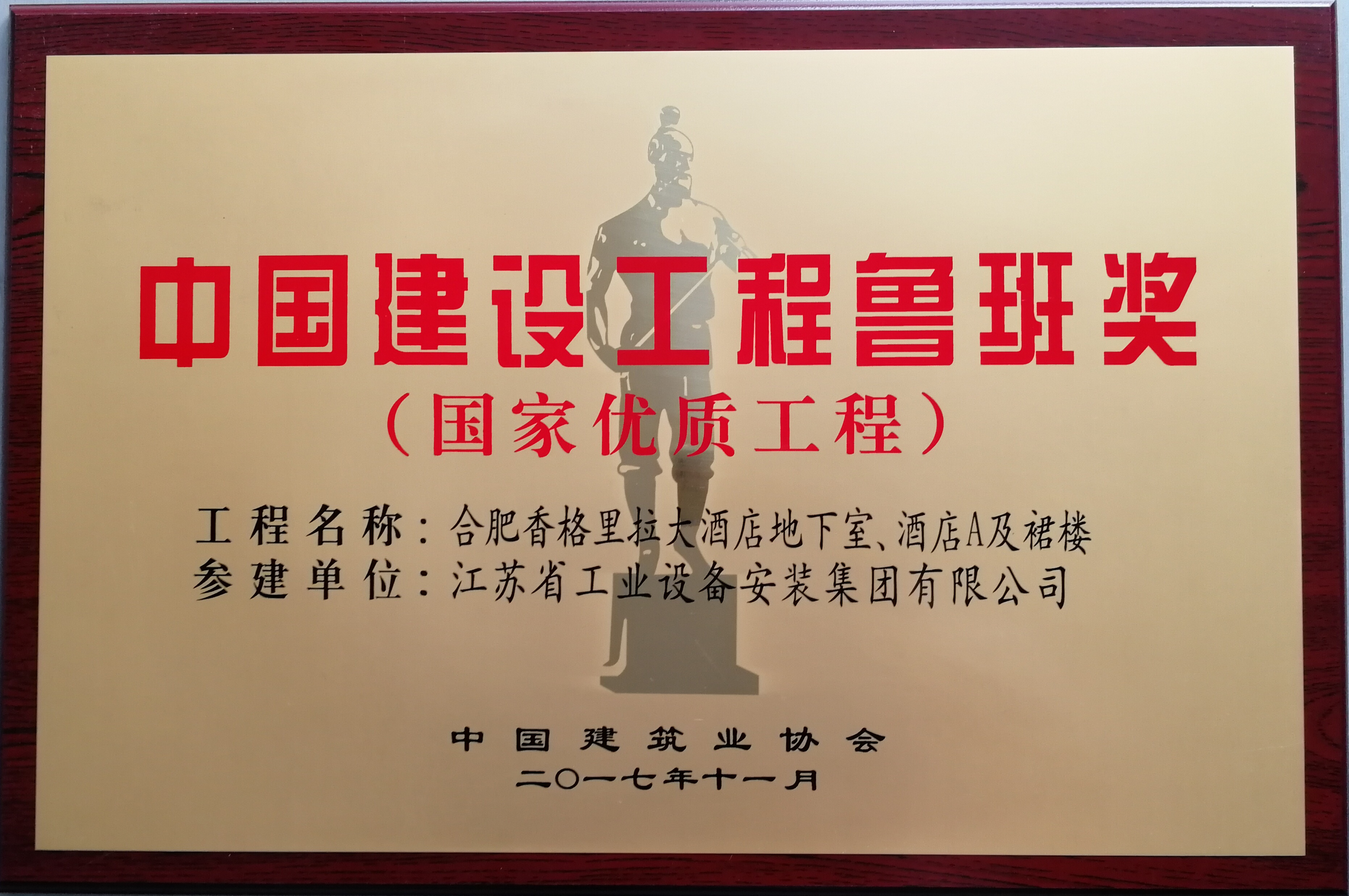 2017年11月6日,中國建築業(ye) 的盛會(hui) ——紀念魯班獎創立30周年暨2016~2017年度創精品工程經驗交流會(hui) 在北京釣魚台國賓館召開。江蘇省安參建的合肥香格裏拉大酒店工程榮獲中國建設工程魯班獎(國家優(you) 質工程),這是江蘇省安第9次獲此殊榮!公司總工程師馬記和項目部代表陳軍(jun) 代表江蘇省安上台領獎。