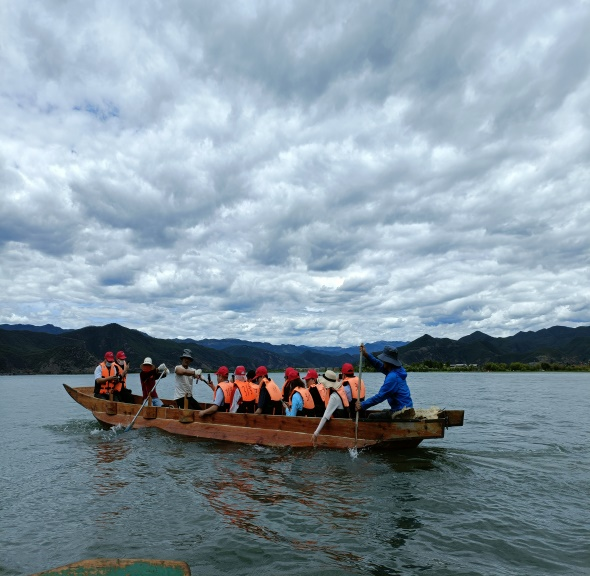 6月19日,大家來到了因走婚而聞名的瀘沽湖,又一次感到了震撼。藍天、白雲(yun) 、蕩漾的湖水、偶爾飛起落下的或者在嬉戲或者在覓食的水鳥,美得令人歎息,任是學富五車,也無法用言語表達此境美好之一。置身此景中,人瞬間便有了放空的感覺,就這一刻,隻想發發呆,看湖波蕩漾,觀雲(yun) 卷雲(yun) 。