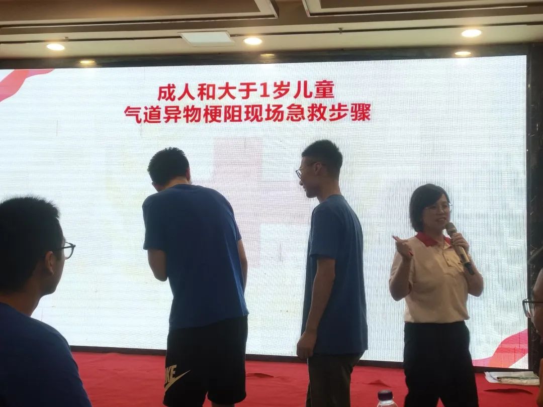 7月14日下午,由紅十字會(hui) 的誌願老師們(men) 向大家普及了安全急救知識。