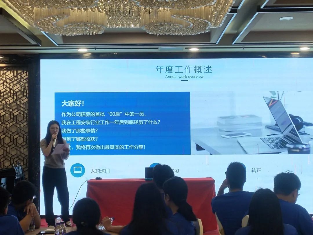 緊接著,被邀請的兩(liang) 位優(you) 秀員工馬偉(wei) 亮和廖雯靖為(wei) 大家分享了入職省安以來的工作體(ti) 驗,他們(men) 以謙卑而自信的姿態向新員工展示了江蘇省安的精神風貌。